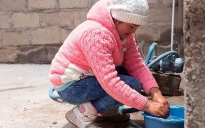 Kl. 12:30 Góður handþvottur er mikilvægur. Ana ætlar að hjálpa mömmu sinni að útbúa hádegismatinn.